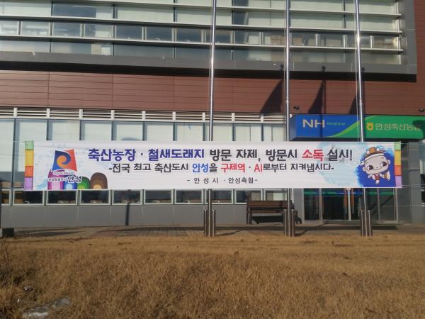 황은성 안성시장은 "지난 구제역과 AI 발생으로 2014년·2015년 설 명절은 공무원과 시민 모두 방역초소 근무 등으로 힘겹게 보냈다"며 "금년에는 보다 철저한 집중 차단방역으로 절대로 우리시에 구제역 AI가 발생하지 않도록 하겠다"고 강한 의지를 보여줬다.