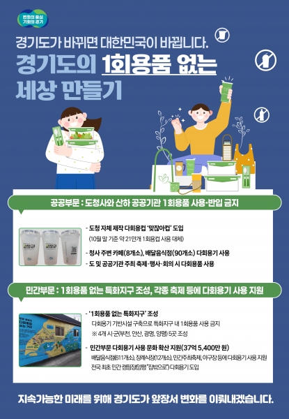 경기도가 바뀌면 대한민국이 바뀐다는 의지를 담아 올해 도가 추진한 1회용품 사용 줄이기 정책과 성과를 살펴봤다.