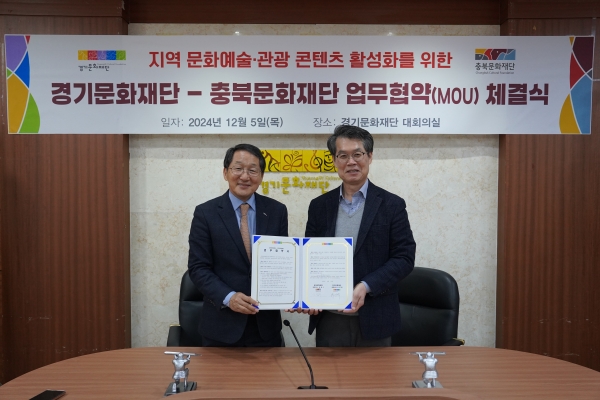 지난 5일 경기문화재단 대회의실에서 열린 협약식에서 양 기관은 △공연, 전시, 교육 등 문화예술 콘텐츠 제작 및 유통을 위한 상호 협력, △지역 관광·축제 콘텐츠 개발 및 마케팅을 위한 상호 협력, △콘텐츠 활성화를 위한 인력 및 학술정보 교류 등에 합의했다.