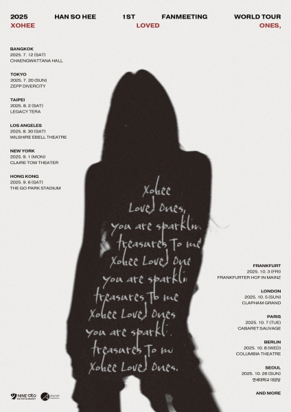 소속사 9아토엔터테인먼트는 14일 오후 공식 SNS 채널을 통해 ‘2025 HAN SO HEE 1st FANMEETING WORLD TOUR [Xohee Loved Ones,]’의 투어맵 포스터를 오픈하며 글로벌 팬들과의 만남을 본격 예고했다.